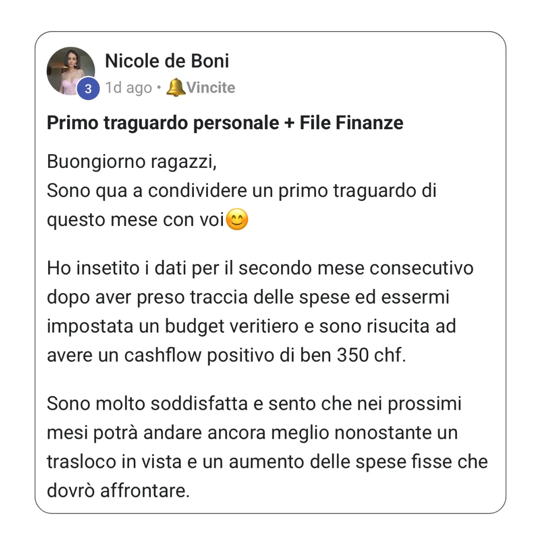 Da quell’ansia di fine mese ogni volta che guardava il conto, a una gestione consapevole e serena del denaro. Questo è il percorso che MoneyLab gli ha permesso di fare, grazie a lezioni pratiche, chiare, e strumenti concreti come il famoso file Excel. Non favole, ma educazione finanziaria vera, per imparare a vivere bene con quello che hai.