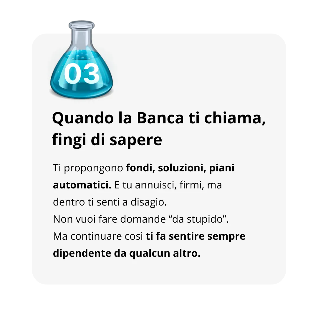 Sentirti finalmente competente e in controllo, smettendo di delegare alla banca o di rimandare per paura.